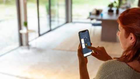 Odbiornik umożliwia zdalne sterowanie światłem za pomocą sterownika przenośnego i/lub smartfonu. Dzięki protokołowi radiowemu io-homecontrol® dostaniesz informację zwrotną czy Twoje światło jest na pewno zgaszone.