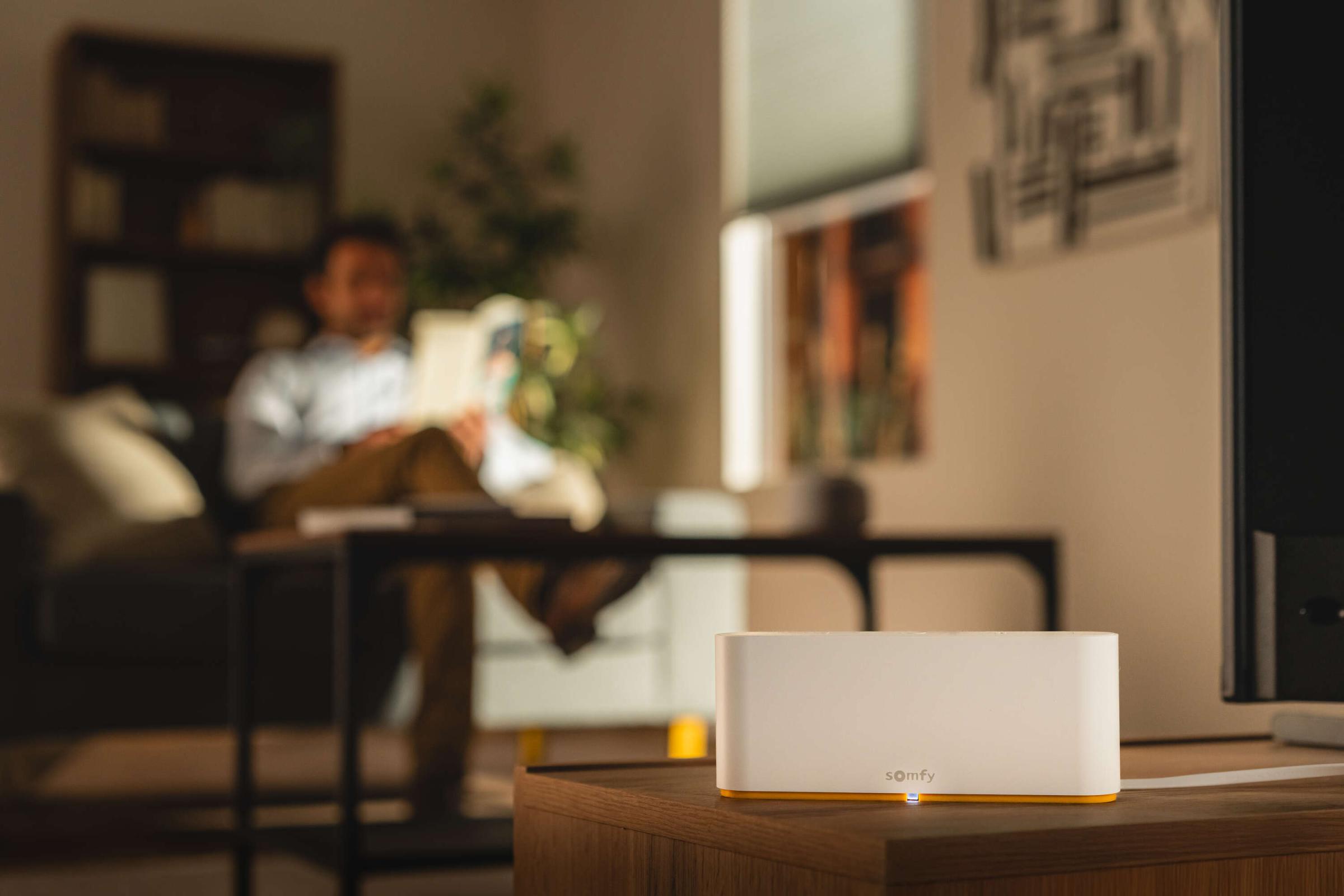 W przeciwieństwie do tradycyjnych systemów inteligentnego domu, TaHoma Switch komunikuje się z urządzeniami całkowicie bezprzewodowo (wymaga jedynie podłączenia zasilacza do gniazdka 230V). Centrala łączy się z Twoim domowym routerem przez sieć Wi-Fi, co oznacza, że możesz postawić ją w dowolnym miejscu w domu – w salonie, przedpokoju, czy na nocnej szafce.