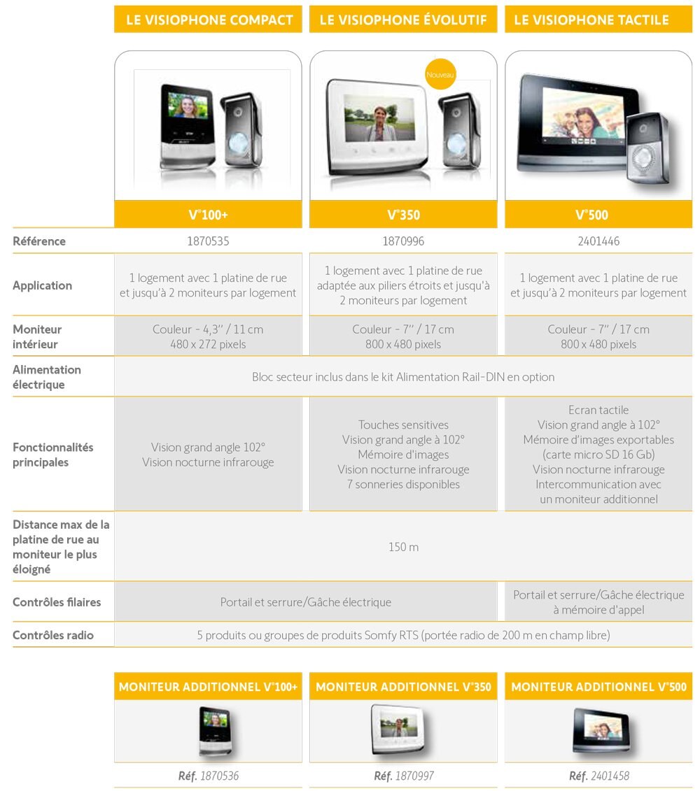 Visiophone ou interphone; Somfy propose de vous équiper d'un portier video sans fil à votre domicile. Le kit portier vidéo dispose d'un ecran lcd couleur avec vision nocturne et non noir et blanc. Certains modèles possèdent un écran tactile et propose la fonction enregistrement. Quand le visiteur appuie sur le bouton de la platine de rue, la sonnette fonctionne, vous êtes ainsi alerté ce qui permets de sécuriser votre domicile. Le visiophone Somfy peut remplacer un ancien interphone vidéo sans fils d'autre marque tel que extel ou scs sentinel. L'installation ne nécessite pas de wifi ou de smartphone. Simple à utiliser et adapté aux nouveaux usages, ces nouveaux appareils vous simplifie la vie.